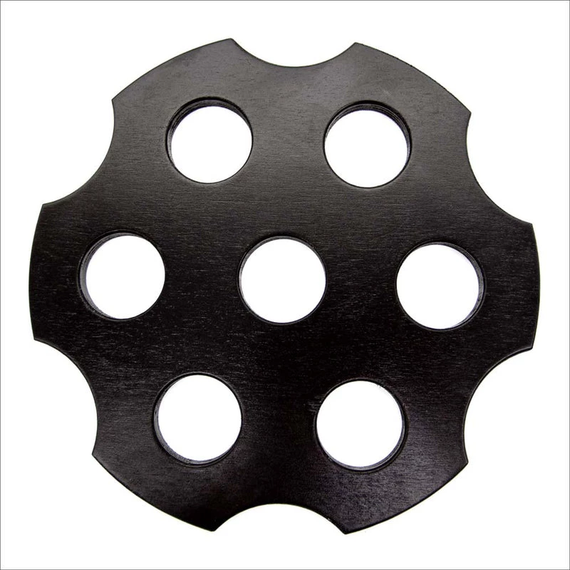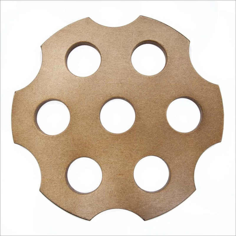 Elevate your party presentation! Attract attention as you deliver table service at the nightclub, or impress your friends and family in VIP style when hosting your own parties. Our 6-shot holder measures 0.5in thick, just under 10in diameter, and has a hole size of 1.65” diameter. It weighs 0.6lbs and is available in black, dark walnut stain, or a variety of printed options. This bottle topper is manufactured in our USA-based woodshop, where we focus on quality and attention to detail.