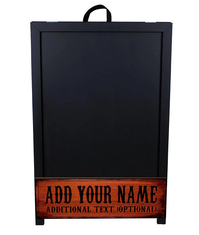 Handmade in the USA, these signs feature a strong wooden frame. The two top (2 inch) hinges as well as a 9.5 inch chain stopper offer a very sturdy, durable frame design that will strongly withstand against weather elements such as wind. A convenient strap handle is securely built in to the top of the sign for convenient transportation. The dual sided chalkboard panels measure 24β X 32β, making this sign perfect to promote in any direction and/or street corner.