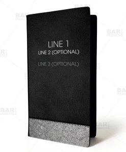 These check holders are constructed from a high quality leather and polyester material combo on the outside, with a soft velvet lining on the interior. The face of the folder showcases a full color black leather and stone inspired design perfect for any type of service. The inside features 2 slots to hold checks, cash and receipts securely while the plastic slot is perfect for holding credit cards. Measures: 5.75″ x 10″.