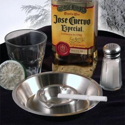This uniquely molded ashtray features a double chamber that aids in capturing those loose ashes that tend to stray away from the ashtray and end up on your bar or table top. The cigarette divots are placed on the inner rim, therefore allowing for more room to the edge, where the ashes tend to most commonly escape. Keep a clean bar and maintain an elegant look with this stainless steel, durable rounded ashtray. Measures a 5.5 inch diameter.