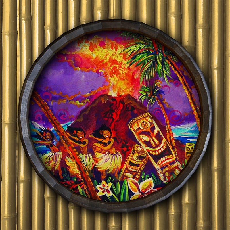 The Tiki Hula Show Wood Barrel Top Sign or Clock features the whimsical and fun art of CBjork. This fiery red hot tiki hula show will look great hung anywhere! The art comes straight from painter CBjork, and even though it is a print, it looks like it was painted right on the Barrel Top!