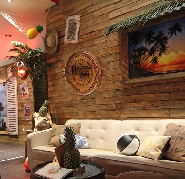 Customize this Jamaican Rum Barrel Top Tavern Sign with your family name or bar name. If you are looking for the ultimate gift for any rum lover, then this is it! The sign is ready to hang, with no assembly required. Each barrel sign is hand crafted by skilled artisans who make sure every sign is of superior quality, and assembled in the BarSupplies.com Wood Shop. Plus, the best part is…adding your personalized information is no additional cost to you!