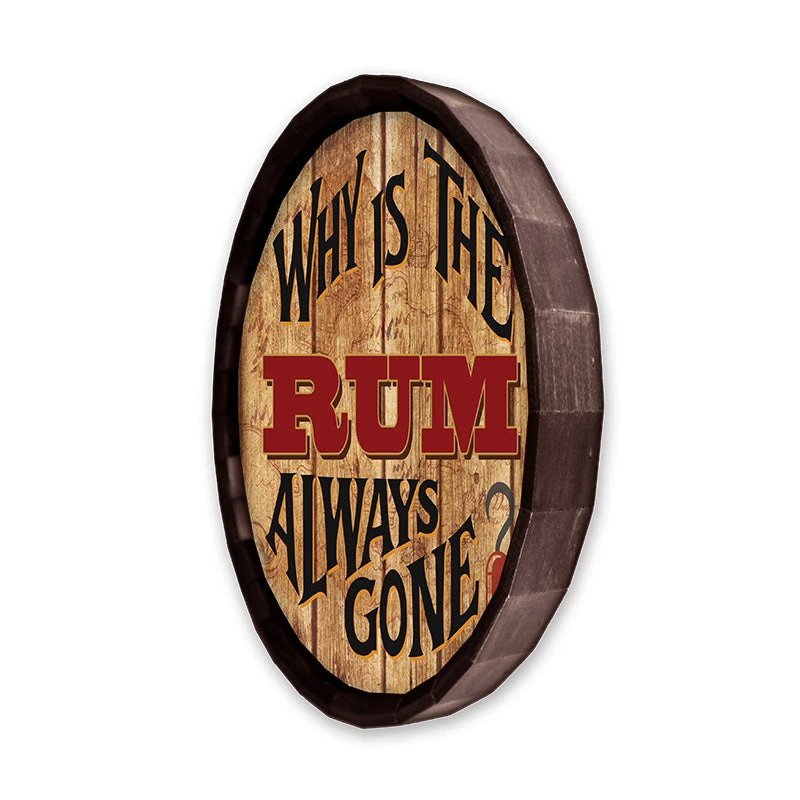 - Barrel Top Sign with Why is the Rum Always Gone Design