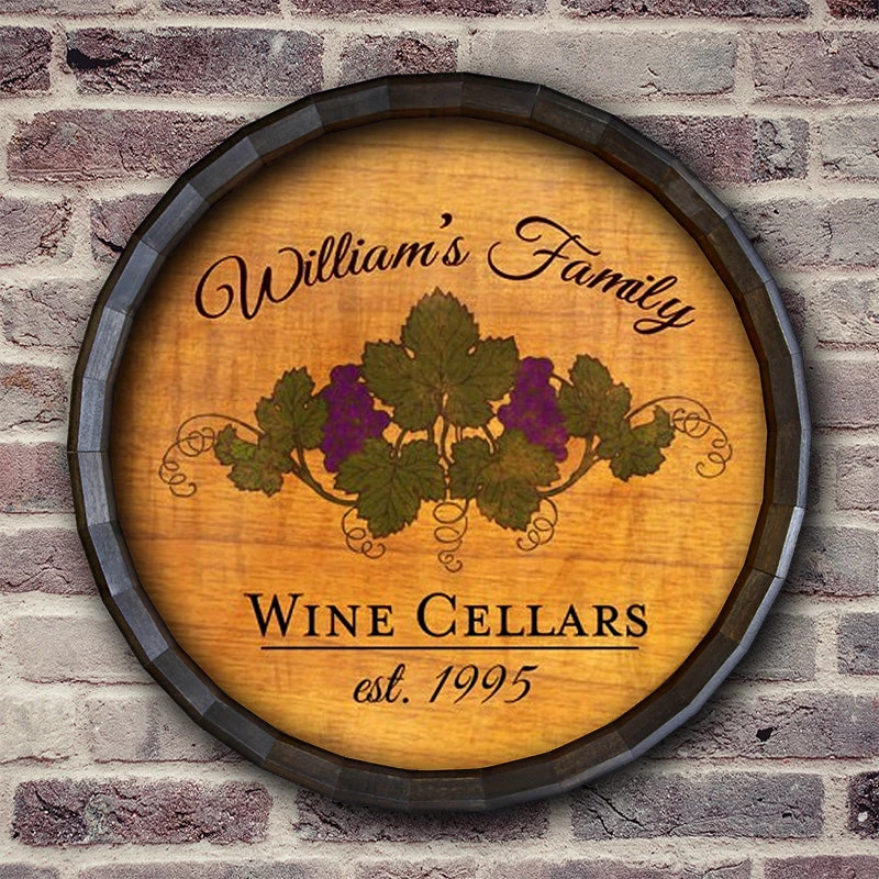 Customize this Wine Cellar themed Barrel Top Tavern Sign with your family name and chosen year of establishment. This hand made sign makes a great gift and will look good in any room. It is especially perfect for wine lovers. Each barrel sign is hand crafted by skilled artisans, and assembled in the BarSupplies.com Wood Shop. It is especially perfect for rum lovers. Plus, the best part is…adding your personalized information is no additional cost to you!