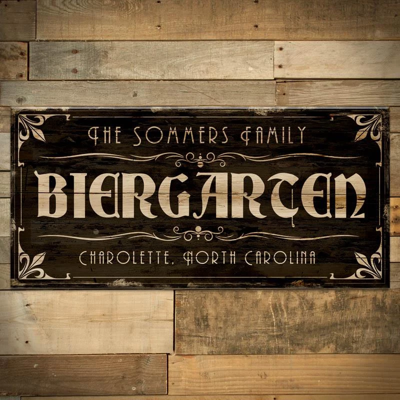 Home and bar decor can certainly set the tone for your guests. They can also make for great conversation pieces! This distressed, Vintage Style “Biergarten” themed Wooden Sign will do just that. The best part is that it is completely customizable. All you need to do is simply type in the required fields with your text and we will custom design this very cool, distressed wooden sign just for you. Think about how excited your friends and family will be when they receive this gift personalized with their own personalization!