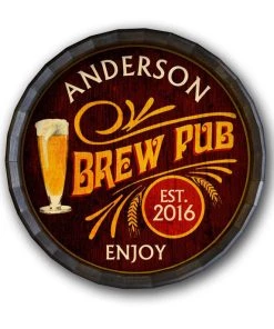 This customizable Barrel Top Sign is the perfect decor for any home! This rustic design has an aged feel that looks like it came right out of a barn or from an old country store. We have also left a space for you to customize this sign and really make it your own! Add your family name, bar name, favorite saying, or anything you would like. Barrel top signs are hand crafted by skilled artisans and make great birthday, holiday, or house warming presents!