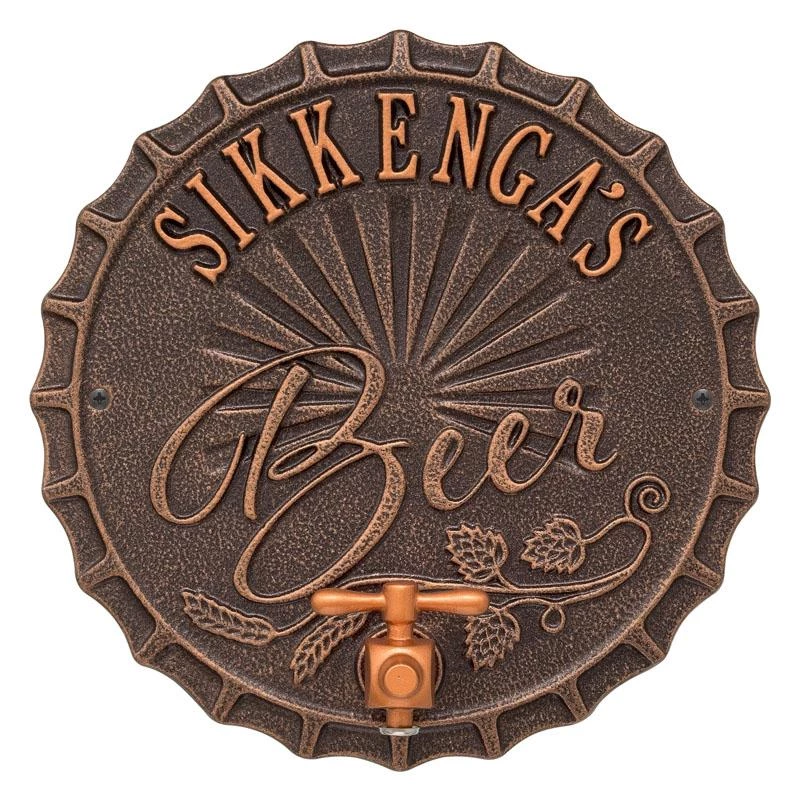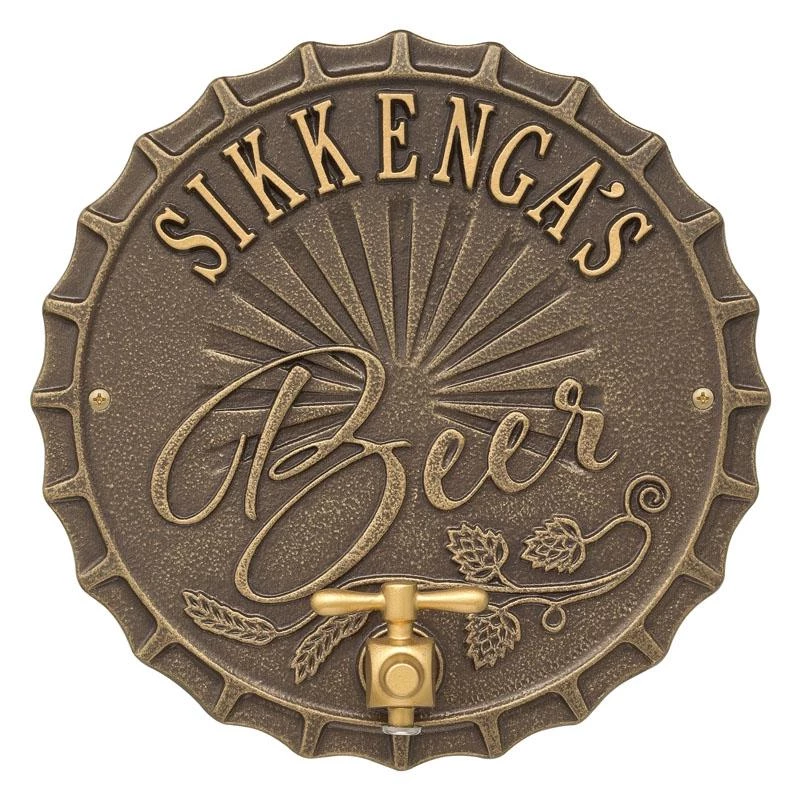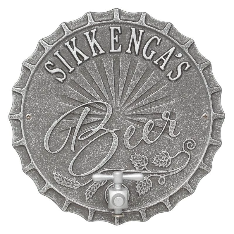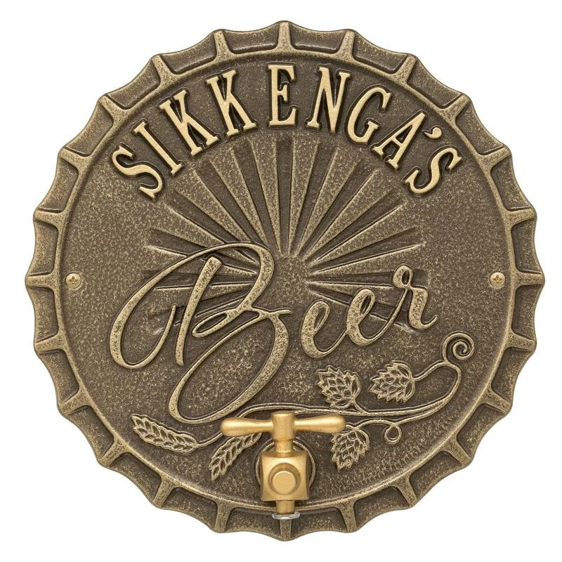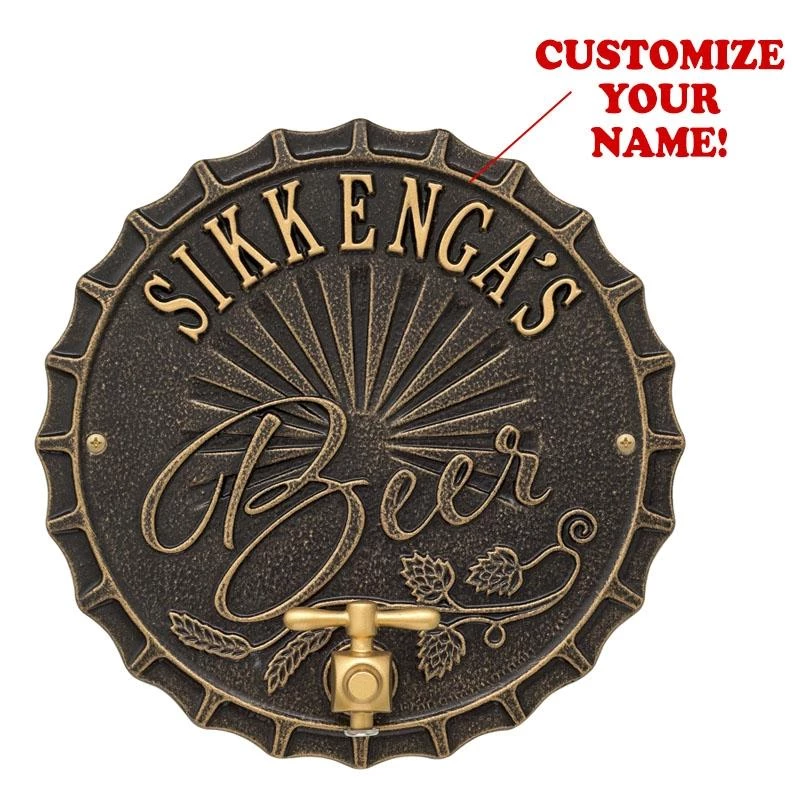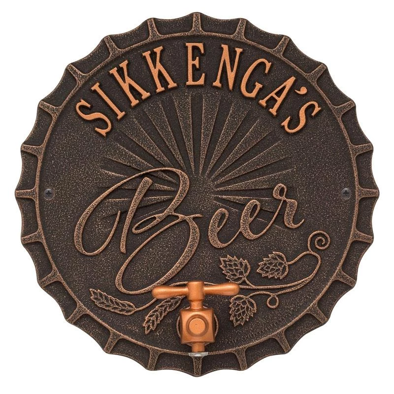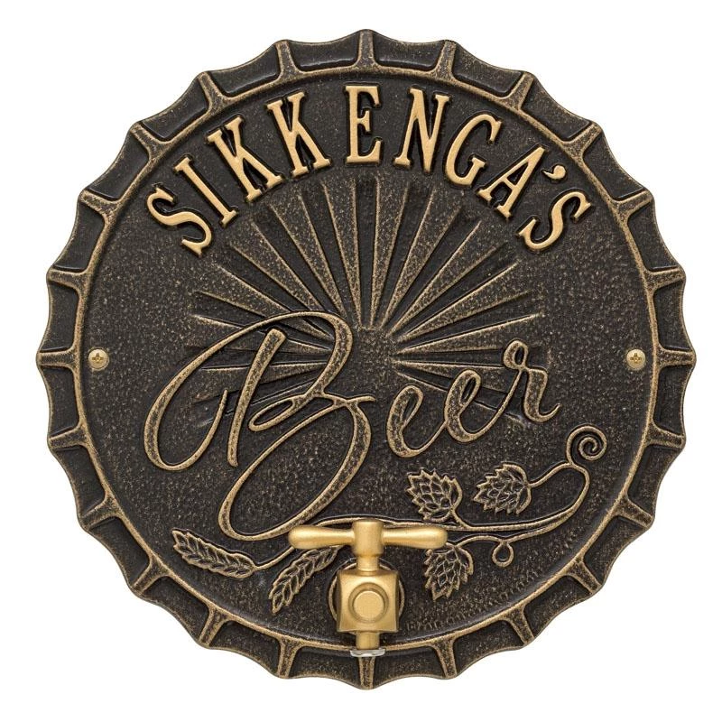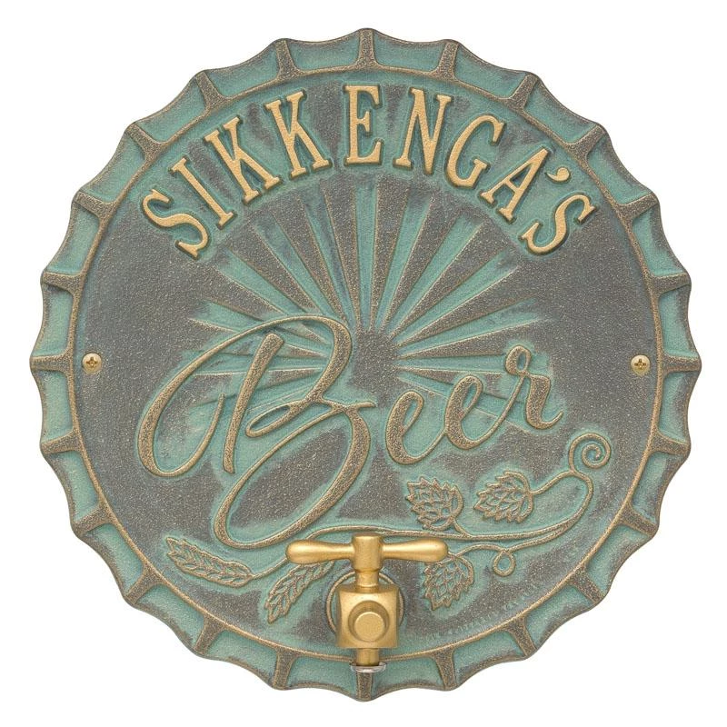 If your home and bar decor defines you and your business, then incorporating one of these personalized cast aluminum plaques with bottle opener will definitely get you some applause. Offered in several color finishes, all of these handmade (in the USA) plaques offer a rustic, antique like style. The faucet is actually used as a bottle opener!