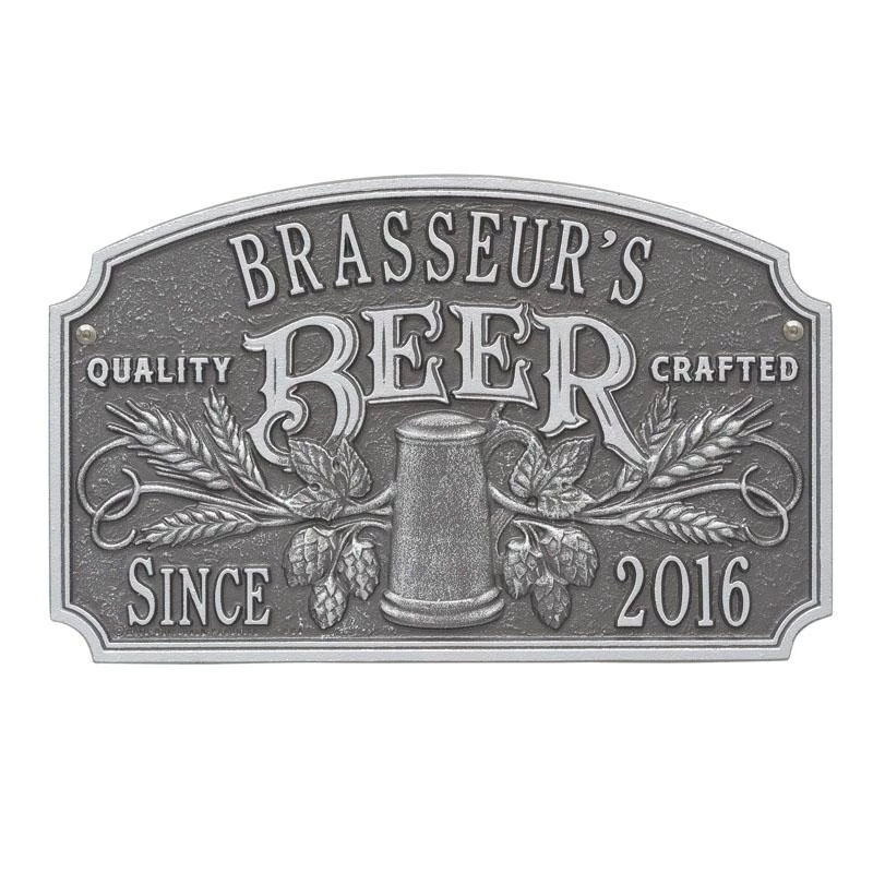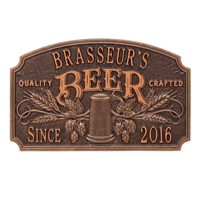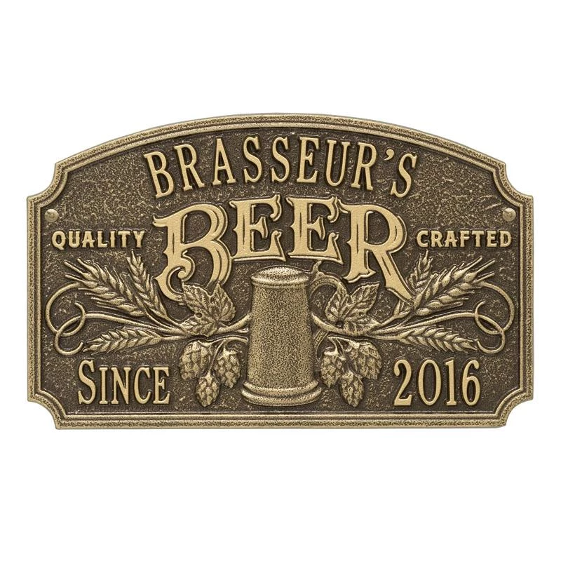 If your home and bar decor defines you and your business, then incorporating one of these personalized cast aluminum plaques will definitely get you some applause. Offered in several color finishes, all of these handmade (in the USA) plaques offer a rustic, antique like style.