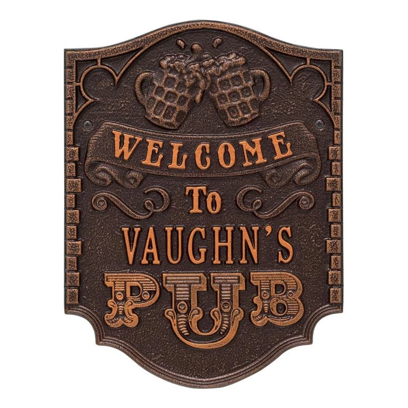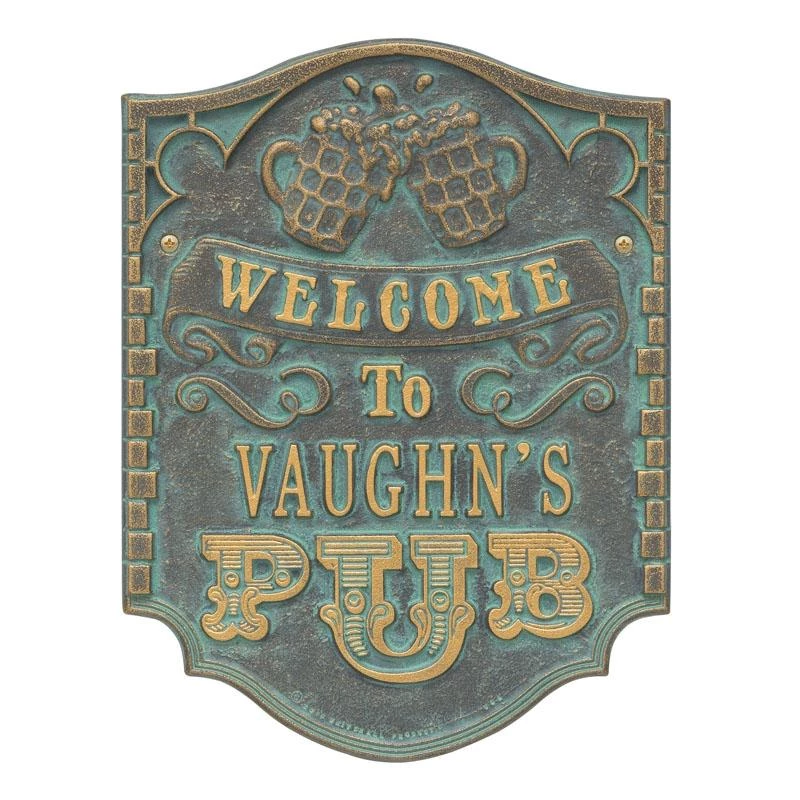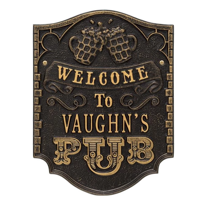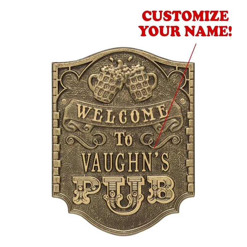 If your home and bar decor defines you and your business, then incorporating one of these personalized cast aluminum plaques will definitely get you some applause. Offered in several color finishes, all of these handmade (in the USA) plaques offer a rustic, antique like style.