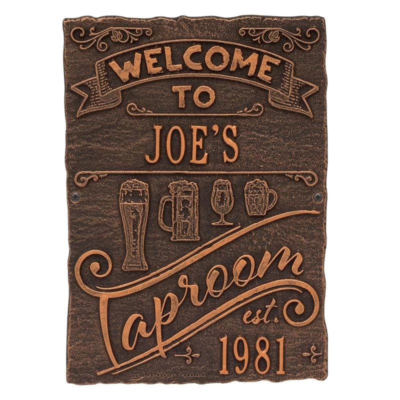 If your home and bar decor defines you and your business, then incorporating one of these personalized cast aluminum plaques will definitely get you some applause. Offered in several color finishes, all of these handmade (in the USA) plaques offer a rustic, antique like style.