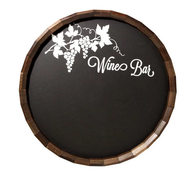 Each barrel top is made of real wood and finished with chalk paint for a unique look! The headers are made of a white vinyl sticker. It is not permanent, but sticks very well to the chalkboard paint. It is made of the same material as a bumper sticker that would be applied to a car, so it is also waterproof.