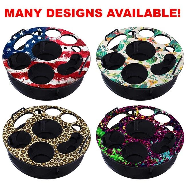 - 2 straw holding holes, and 2 2.2″ ramekin holes