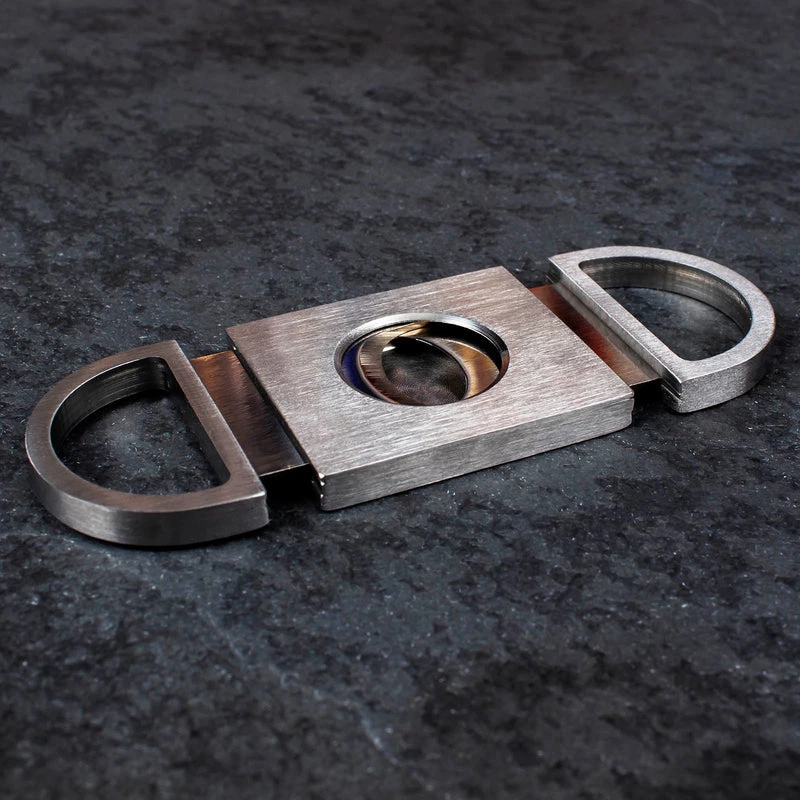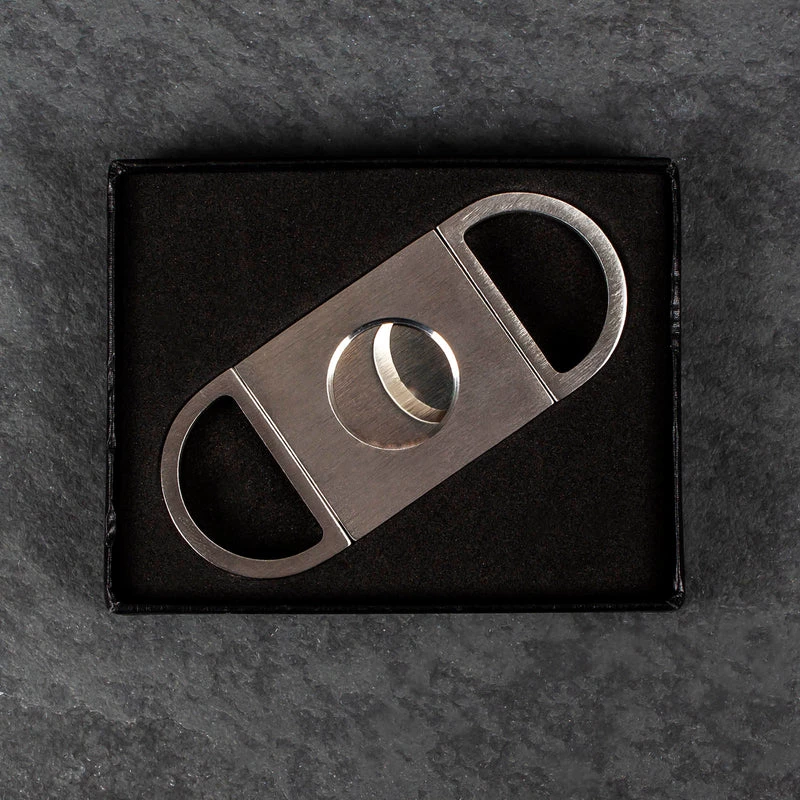 This guillotine style cigar cutter is a must have for any cigar lover. The slim and lightweight design of this cutter makes this piece an easy to use and efficient high quality cigar accessory. It is made of durable stainless steel and is specifically designed to give you a precise cut every time. It measures 3.5″ long and has a width of 1.5″. The diameter of the cutter hole is .75″.ย