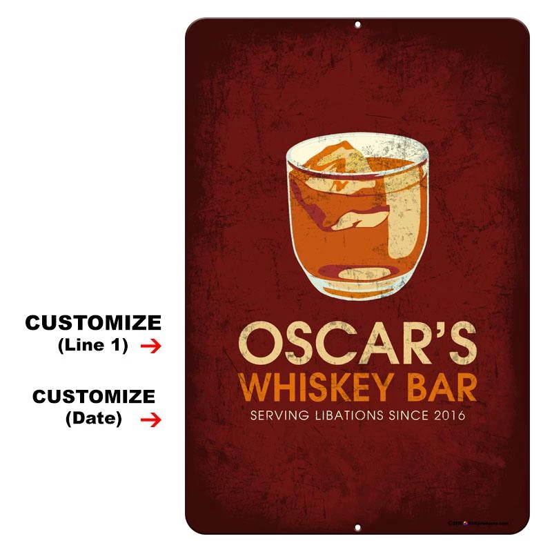 Home and bar decor can certainly set the tone for your guests. They can also make for great conversation pieces! This Vintage Style, retro aluminum bar sign will do just that. The best part is that it is completely customizable. All you need to do is simply type in the required fields with your text and we will custom design this very cool, distressed metal sign for you. Think about how excited your friends and family will be when they receive this gift personalized with their name or favorite phrase. It looks trendy and fun in any bar, home, man cave, kitchen and even outside patio. Made from a rust resistant aluminum, this sign show cases a full color, bold design sure to catch the eye of any passerby.