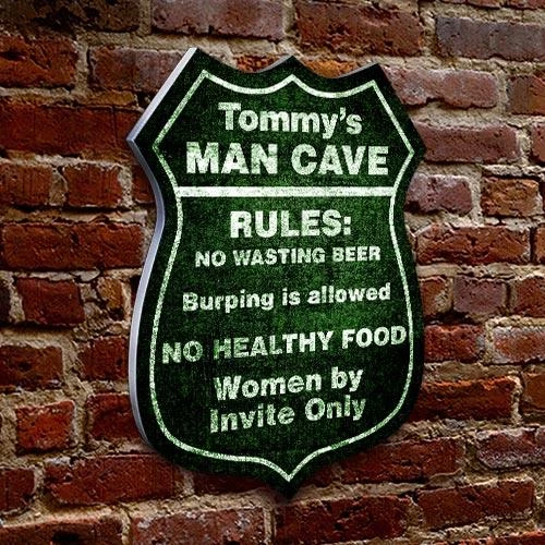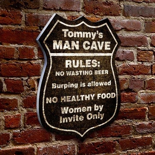 This wooden Man Cave sign is perfect for your dude den! This one of a kind humorous sign is also great for bars, family rooms, and more. Each sign is made to order by skilled craftsmen, and double checked for quality before it leaves our warehouse. Let your home bar or man cave be the envy of everyone who visits!