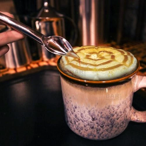 Decorating Spoons are a wonderful alternative to squeeze bottles when it comes to garnishing and decorative plating for beautiful entrees or desserts. Use these spoons to add a special touch to hot or cold café beverages and coffee cocktails with drizzles of chocolate or caramel. This Decorating Spoon Set comes with two decorating spoons, one small and one large, each constructed of strong stainless steel. Where pastry bags and squeeze bottles fall short is in their design. This spoons curved shape and tapered end allow you to quickly change between sauces but simply rinsing the spoon and moving onto the next.