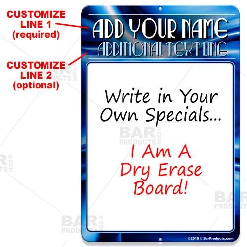 Every bar or restaurant has specials and events they need to promote… it’s what keeps you one step above the competition. There are many ways to get the word out, and this dry erase metal sign is one of the best! This metal “specials” sign is a dry erase board, so you can easily change your specials from day to day or week to week. It wipes away clean with no colored stain left behind. There are 2 small drill holes on the top and bottom, so mounting this sign securely to a wall is easy. Choose from 2 sizes: 12″ x 18″ or 9″ x 12″