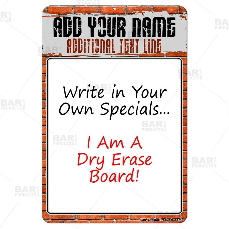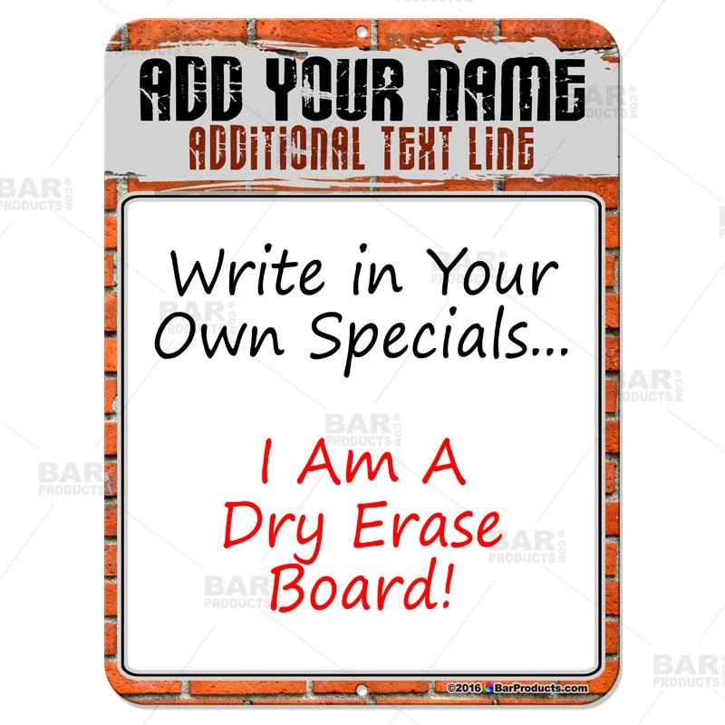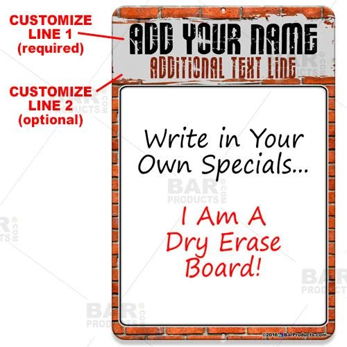 Every bar or restaurant has specials and events they need to promote… it’s what keeps you one step above the competition. There are many ways to get the word out, and this dry erase metal sign is one of the best! This metal “specials” sign is a dry erase board, so you can easily change your specials from day to day or week to week. It wipes away clean with no colored stain left behind. There are 2 small drill holes on the top and bottom, so mounting this sign securely to a wall is easy. Choose from 2 sizes: 12″ x 18″ or 9″ x 12″