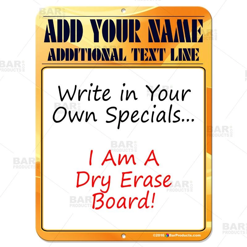 Every bar or restaurant has specials and events they need to promote… it’s what keeps you one step above the competition. There are many ways to get the word out, and this dry erase metal sign is one of the best! This metal “specials” sign is a dry erase board, so you can easily change your specials from day to day or week to week. It wipes away clean with no colored stain left behind. There are 2 small drill holes on the top and bottom, so mounting this sign securely to a wall is easy. Choose from 2 sizes: 12″ x 18″ or 9″ x 12″