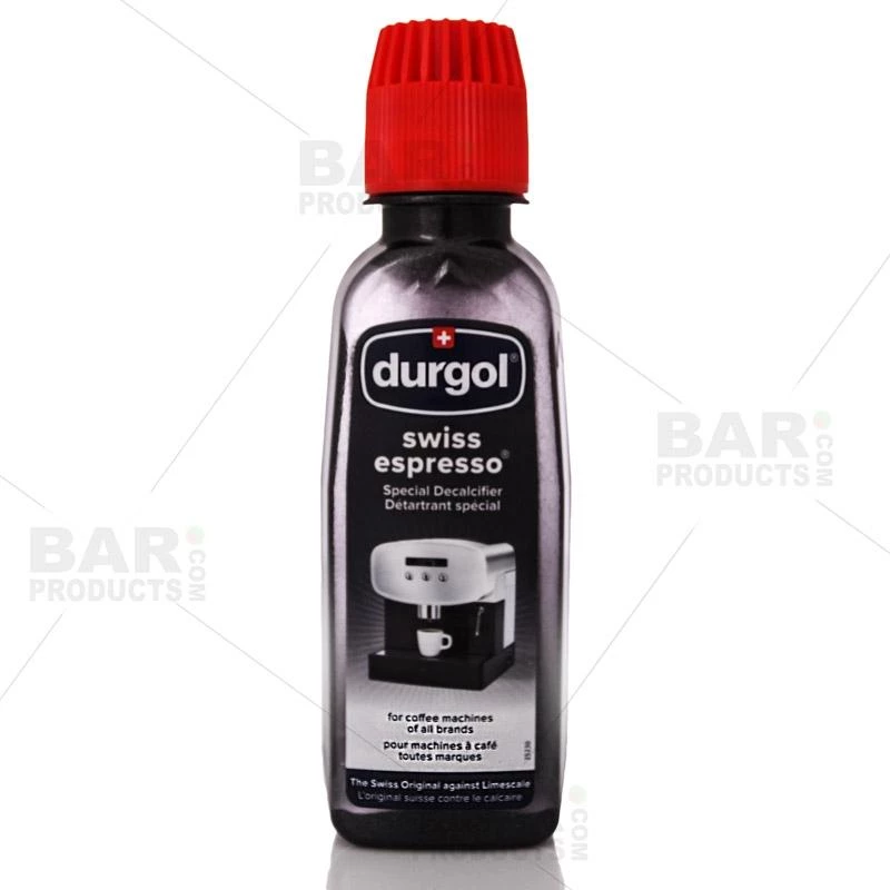 Durgol Swiss Espresso is a specialty cleaning solution perfect for descaling all types of automatic espresso machines and coffee machines. This espresso machine cleaning solution is safe and easy to use. It takes just one 125ml bottle to descale your entire brewing machine and does NOT leave behind any residue or residual taste so every cup is as delicious as when the machine was new. Regular cleaning with Durgol Swiss Espresso ensures a long life for you coffee or espresso machine!