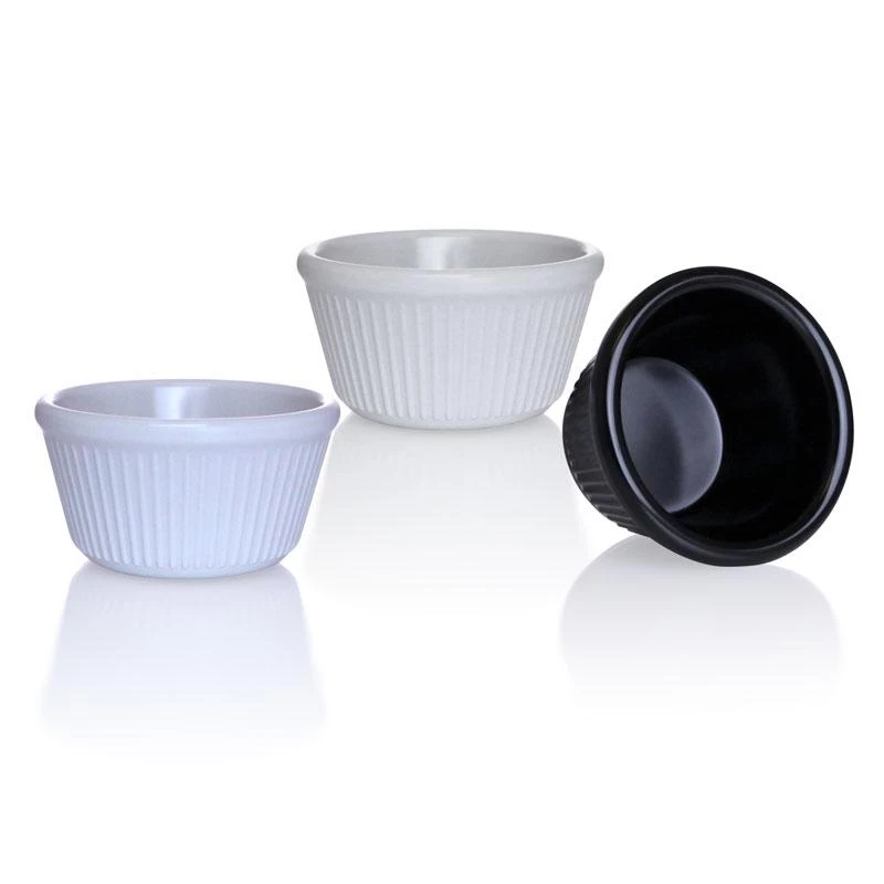 The 3 oz. Fluted Melamine Ramekins are ideal for serving an individual portion of food, baking, snacks, or pre-measure cooking ingredients. Whether youโre serving, dip or sauce alongside appetizer or serving your signature dessert at your kitchen, restaurant, bar, diner, or cafรฉ. Available in Black, Bone, and White color to suit any decor and condiment.