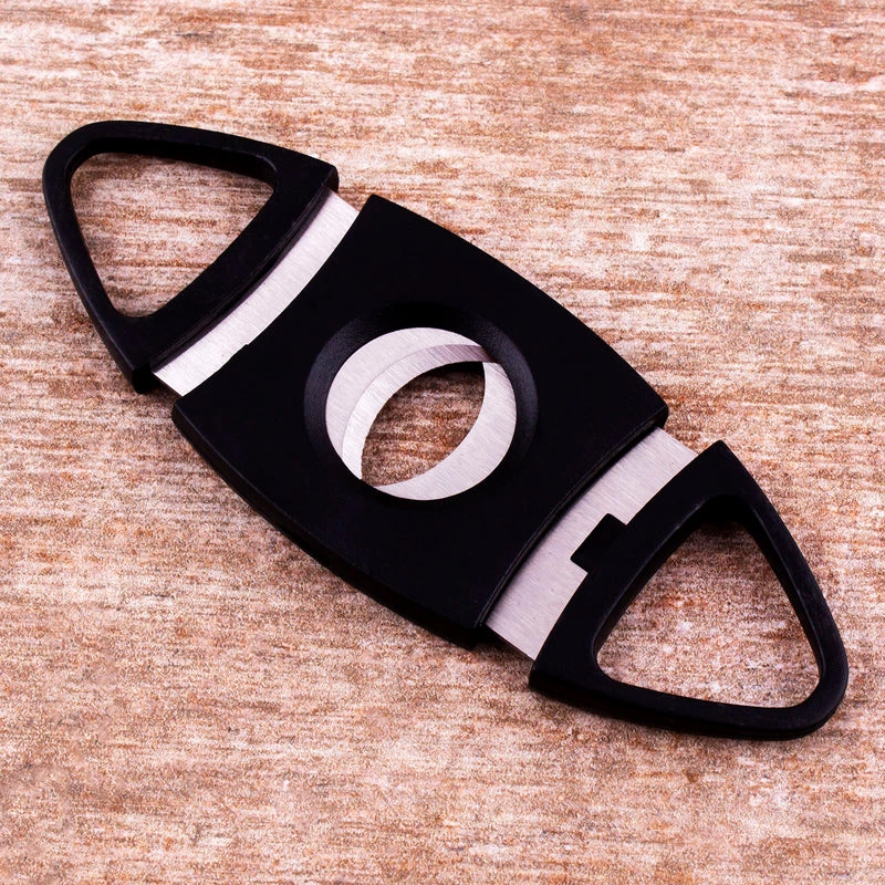 This 54 Ring Gauge 2 Stainless Blade Cigar Cutter is designed to provide a clean chop on your favorite cigars up to a thick 54 ring gauge. It is very lightweight, and easy to use. It is made of durable plastic and measures 3.75″ in length.Β