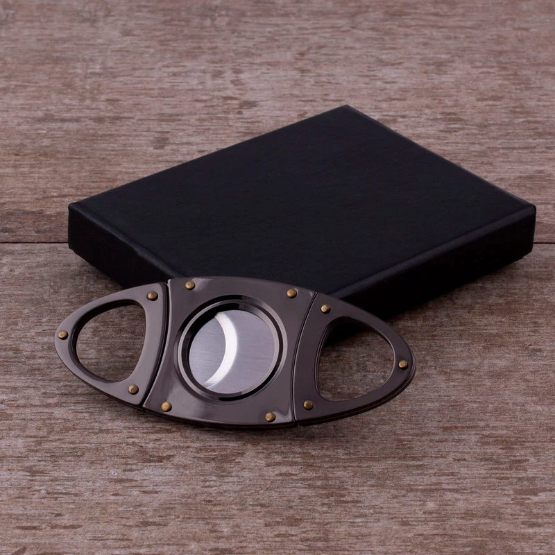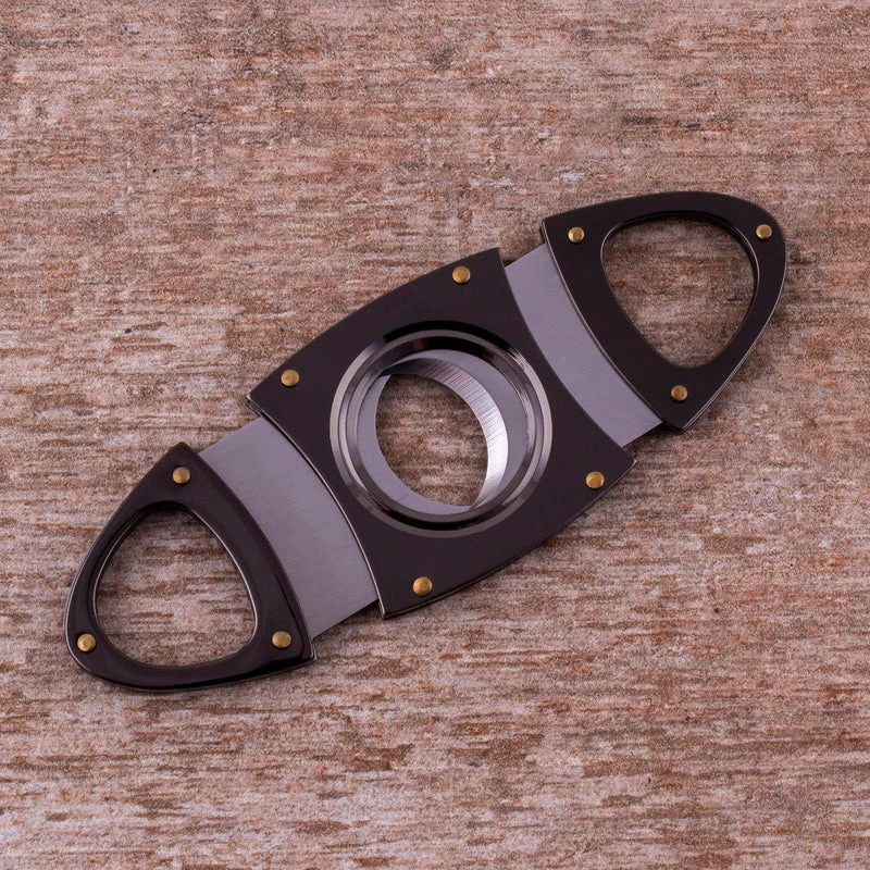 This double blade guillotine style cigar cutter is crafted to provide you with the best possible cigar cutting experience. The straight cut is one of the most preferred cut styles by many cigar enthusiasts and our razor sharp blades provide a smooth and precise straight cut with each and every use. With this cutter, you can expose the entire tip of the cigar to allow the maximum amount of smoke to escape with minimum build up occurring around the edge. The slim and lightweight design of this cutter makes this piece an easy to use and efficient high quality cigar accessory. Constructed from durable stainless steel this double blade guillotine cutter was made to last. The design and quality construction of this product is intended to provide cigar lovers with a sophisticated and easy to use cigar cutter. This cutter is 3.75″ in length and the diameter of the cutter is 1″. This cutter comes with a small slim gift box.