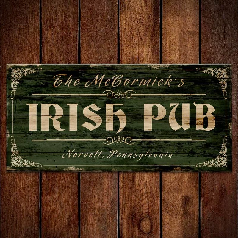 Home and bar decor can certainly set the tone for your guests. They can also make for great conversation pieces! This distressed, Vintage Style “Irish Pub” themed Wooden Sign will do just that. The best part is that it is completely customizable. All you need to do is simply type in the required fields with your text and we will custom design this very cool, distressed wooden sign just for you. Think about how excited your friends and family will be when they receive this gift personalized with their own personalization!