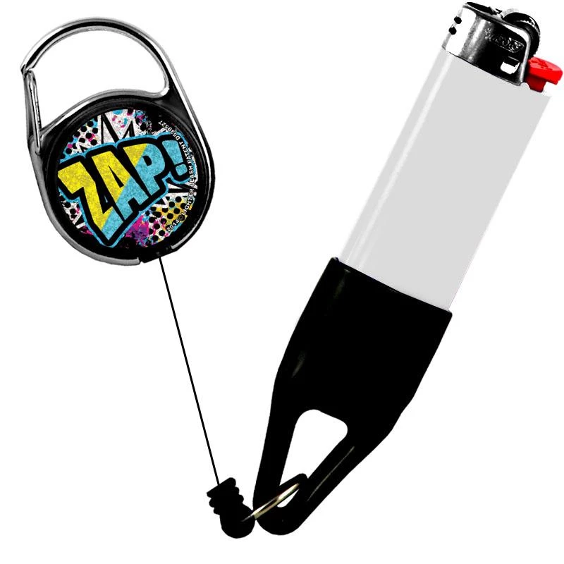 The Premium Clip Lighter Leash® is a favorite among many who prefer easy access to their lighter. It features a carabiner style clip that conveniently attaches to your belt loop, purse and many other accessories you tend to wear or keep nearby. It is designed to hold most commonly Bic® Lighters, but will form to many other standard sized lighters as well, such as Clipper® and Winlite®. Its black vinyl lighter holder offers a snug fit around your lighter, keeping it securely in place at all times. When in use, the durable retractable cord reaches out to 36” in length. U.S. PATENT #D539527