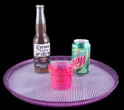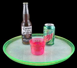 These fun neon serving trays stand out as your server works their way through a crowd. The durable high quality plastic tray illuminates bold neon colors under a blacklight. If you own a nightclub or bar that uses blacklight technology then these trays are a must have. They will not only add to the colorful ambiance of your club but there is no need for electrical devices or batteries. Grab a few different colors and mix it up, a must have at these incredible economic prices. Now available in four Neon colors: Green, Pink, Blue, and Purple. Smoke and Clear do not glow under blacklight.