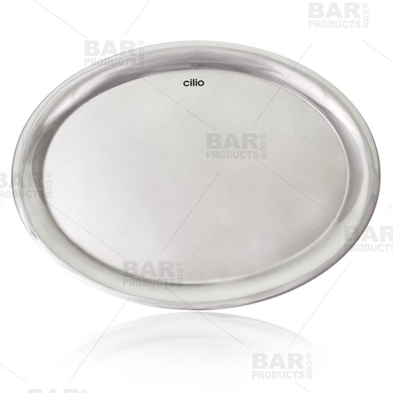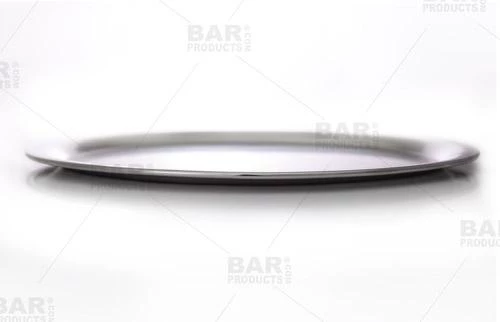 The style of this rounded, polished stainless steel serving tray is ideal for serving beautifully prepared coffee, espresso, decorated cappuccinos and other cafe treats. Its oval design features rounded edges elegantly tapered in to form the flat base of the tray and keep saucers, spoons and other items from sliding off. This petite stainless steel barista serving tray measures 10.5 inches by 8.25 inches and is well balanced for use in any fast-paced cafΓ©, coffee house, espresso bar, restaurant or bar.