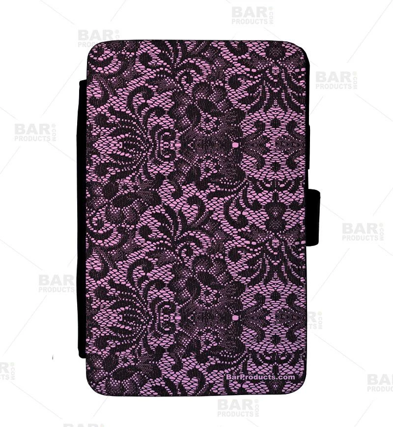 When not in use, the snap button will keep your check pad holder closed and your inner contents safe. Slip it into your apron, or utilize the built in belt clip to fasten to your pants or belt for quick and easy access. Constructed from a leather and polyester material combination, the face of this guest check pad holder showcases a full color pink lace design that is perfect for adding a bit of personality to your service.