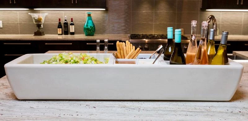 The Polar White Party Barge is the perfect serving station or beverage tub for all types of events. This handy beverage tub can be used as an ice well, beer or wine cooler, food display, and more! Allow you guests to easily serve themselves with this convenient tub. The three handy compartments can be used to hold almost anything. They are even thick enough that hot and cold items can be placed right next to one another.