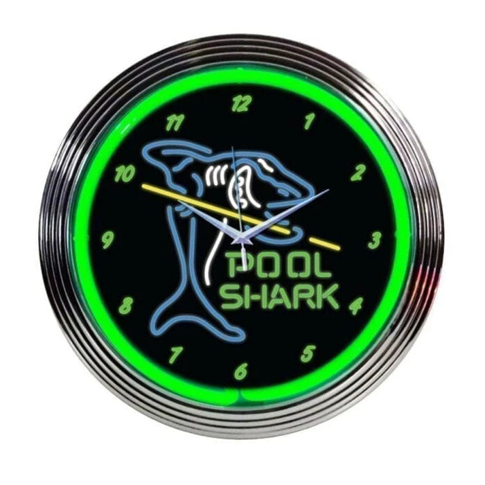 This Neon Clock generates 25 watts of light fromΒ a hand blown ring of real glass neon. Showcases a glow of real neon!! Features a glass faceΒ andΒ a chrome rim with a single ring of green neon. The quartz movement clock operates on one AA battery (not included). The neon light is powered by an AC adapter (included) that plugs directly into a wall outlet.Β A great addition to any bar, poolroom, or mancave.Β Indoor Use Only