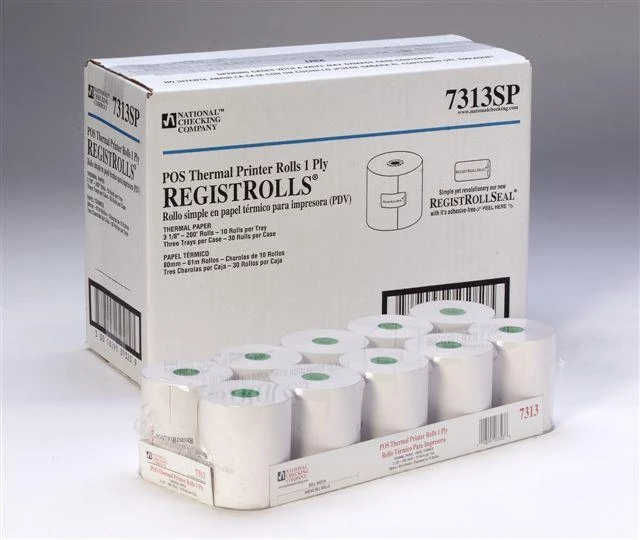 REGISTROLL® 3.13″ THERMAL WHITE 1 PLY 200′- Inner packed 10 rolls per tray / 3 trays per case(30 rolls).