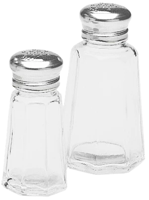 Sold in packs of 2 dozen, these salt and pepper shakers are a common restaurant table top accessory. They feature a mushroom cap top and a paneled glass design. Ideal for fitting our salt and pepper wire holders. Stock up on either 1 or 2 ounce shaker sizes.