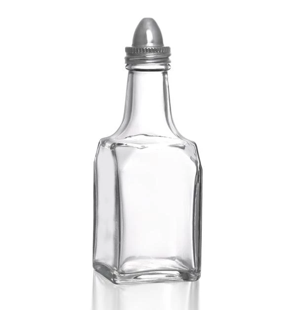 “This Cruet is ideal for dispensing olive oil, vinegar or other signature dressings. This featured square smooth glass holder, holds 6 oz.. Each cruet comes complete with a stainless steel pouring top. Perfect to be kept on the tableside, so your guests can dress their salads with oil and vinegar to their own taste.