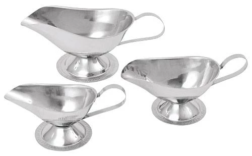 Made of durable stainless 18/8 stainless steel, these easy-to-clean gravy serving vessels are perfect for a variety of gravies, sauces, dressings and more. Available in three sizes, for table and individual use.
