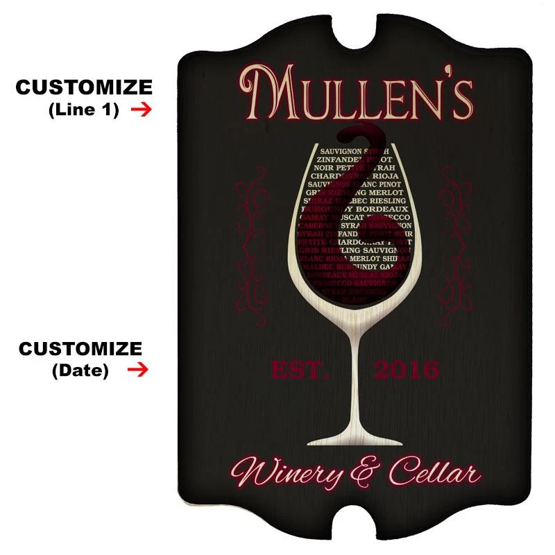 This wood tavern sign features a classic look with a fun modern font that will surely look great hung anywhere. Personalize it with your bar name, family name, or any text you would like. It is made of real wood, and has 2 holes that have been drilled to allow for easy hanging on any wall. This sign also makes a great holiday or house-warming present!