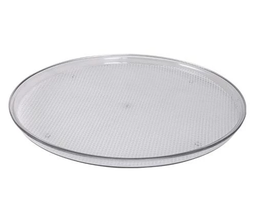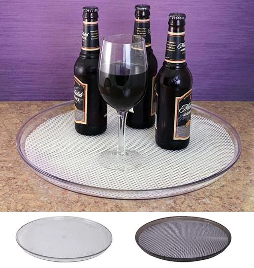 Economical, durable, and ideal! These translucent serving trays fit any venue and “serve” a great purpose. They measure a standard cocktail serving tray size of 15″ in diameter with a 3/4″ lip and are available in clear or with a smoke tint. These trays come complete with a removable tray mat that will aid in preventing slipping, sliding and spilling of inventory.