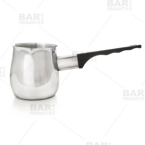 These 6 and 12 ounce Turkish Warmers are made of highly-reflective stainless steel with a heat resistant handle that can be used for warming many types of liquids such as milk, cream or water. Also referred to as a Turkish coffee pot it can be used to make Mediterranean style coffee and as a butter melting pot. This durable barista tool can stand up to the toughest holiday meal prep whether your are warming a savory sauce or heating sweet cream for coffee. These stainless steel Turkish Warmers are perfect for professional or at home use.