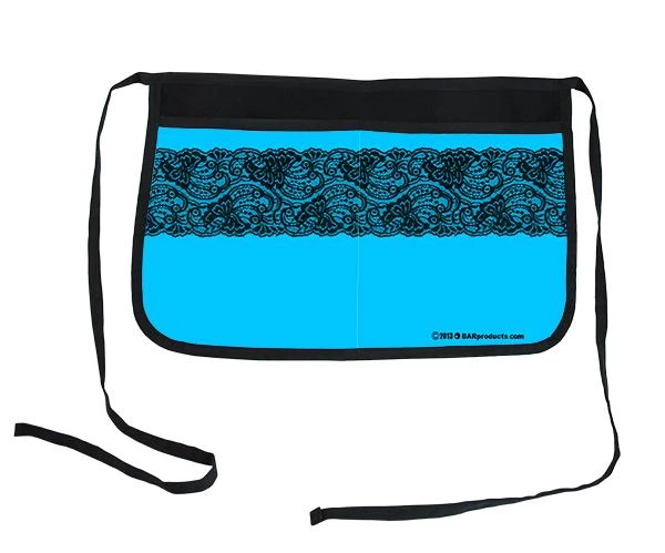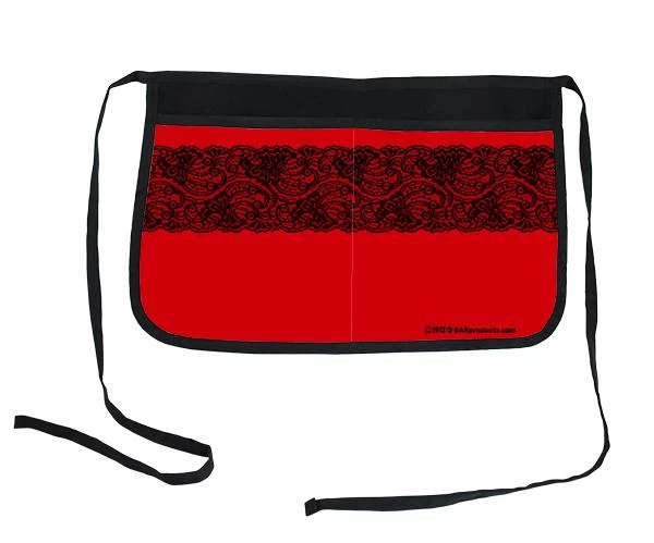 This sexy little apron is perfect for wearing on those long shifts or at home in the kitchen. This apron is available in 3 colors: Hot pink, red, and blue. Keep all your gear and money within easy reach in this 2 pocket apron. (Lace is a printed image)