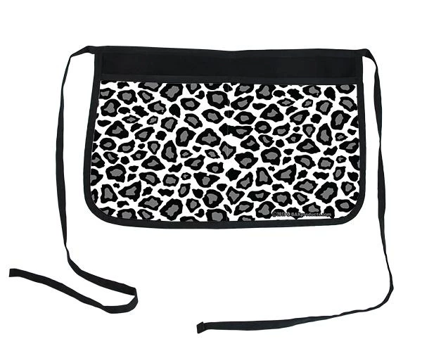 You will certainly stand out from the crowd when you rock this stylish server apron. The Leopard Kolorcoat™ Server Apron features 2 deeps pockets that are perfect for holding your money, receipts, bottle openers, pens, and anything else that you might need for your shift.. Available in grey or pink leopard print.