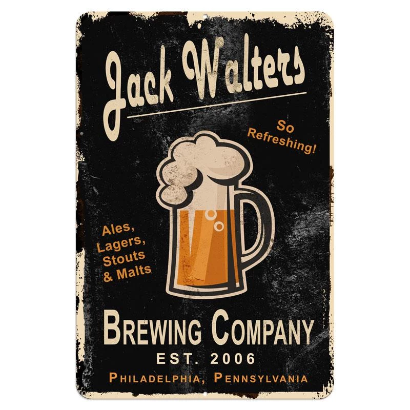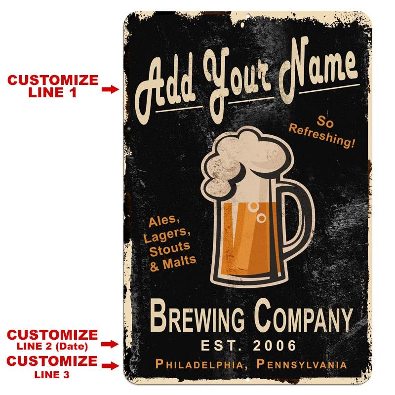 Home and bar decor can certainly set the tone for your guests. They can also make for great conversation pieces! This Vintage Style, retro aluminum bar sign will do just that. The best part is that it is completely customizable. All you need to do is simply type in the required fields with your text and we will custom design this very cool, distressed metal sign for you. Think about how excited your friends and family will be when they receive this gift personalized with their name or favorite phrase. It looks trendy and fun in any bar, home, man cave, kitchen and even outside patio. Made from a rust resistant aluminum, this sign show cases a full color, bold design sure to catch the eye of any passerby.