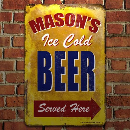 Home and bar decor can certainly set the tone for your guests. They can also make for great conversation pieces! This Vintage Style, retro aluminum bar sign will do just that. The best part is that it is completely customizable. All you need to do is simply type in the required fields with your text and we will custom design this very cool, distressed metal sign for you. Think about how excited your friends and family will be when they receive this gift personalized with their name or favorite phrase. It looks trendy and fun in any bar, home, man cave, kitchen and even outside patio. Made from a rust resistant aluminum, this sign show cases a full color, bold design sure to catch the eye of any passerby.
