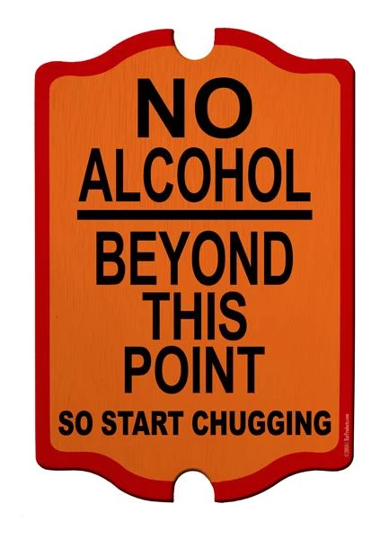 The normal No Alcohol Beyond this point is boring! This wooden tavern style sign at least let’s you know what to do with your unfinished alcohol. It is the perfect sign to hang at any bar’s exit. This sign is made of real wood, and hand crafted in the USA. The colors are printed on using our permanent transfer process, and will look great for years to come.