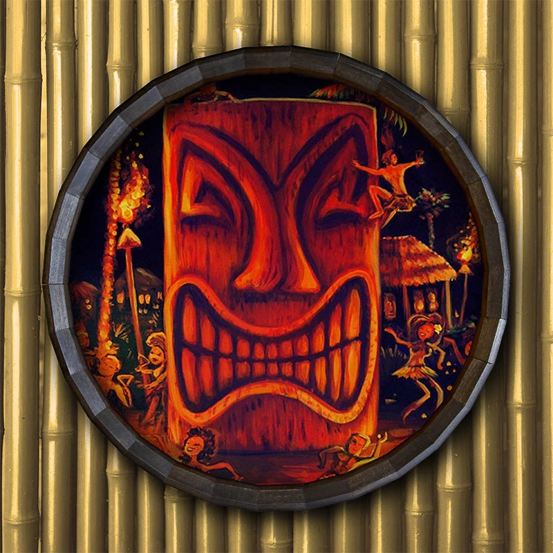 This barrel top sign is made in the USA, and handcrafted in our own woodshop. The print on the wood features beautiful vibrant colors, and is perfect for tiki or home bars!