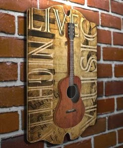 Cheapest 😉 Bars Live Music Nightly – 3D Wooden Guitar Tavern Sign ✨